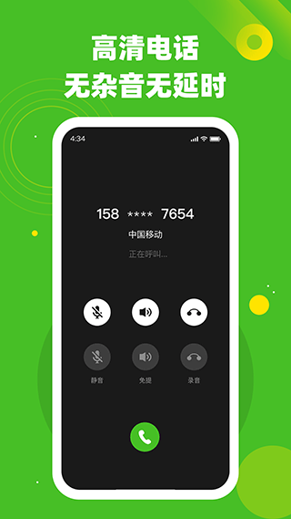采用国际先进网络电话语音技术,拒绝延时,杂音,信号丢失,真正实现电信级通话质量,与正常移动通话无差异。