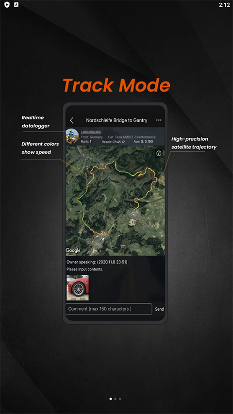 设有全球排行榜功能,车友们可以将自己的测试成绩上传至排行榜,与来自世界各地的车友进行比拼
