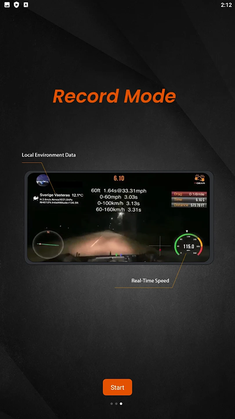 作为汽车性能的标志性参数,0-100公里/小时以及100公里/小时-200公里/小时需要的时间是非常重要的性能指标,以往车友需要耗费大量的金钱去购买昂贵的专业测试设备,来获得自己爱车相对比较准确的测试成绩,现在P-Gear以不到目前主流品牌1/10的价格就可以获得同样误差小于0.1秒的测试工具,同时得益于APP的丰富界面效果,可以实时绘制以0.1秒为间隔的加速度、速度、时间曲线,并以每10公里/小时为区间显示加速所需要的时间,并且有高度变化曲线来展现是否有下坡偷跑嫌疑。