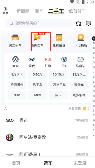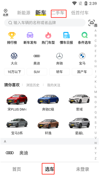 1、进入懂车帝极速版app后,点击选车-二手车;