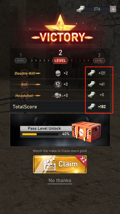● 射击敌方目标旁边标有绿色的目标时,您也将获得额外积分。但是有一个两难的问题,你应该先射击奖品来获得它,而不是敌方士兵。你会先拍哪一个,一旦你击中奖品,敌方士兵就会注意到你并开始向你射击。