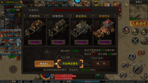 3、跟随引导完成运镖任务,完成五次运镖获取百亿经验