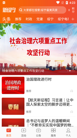 新绥宁app是一个由绥宁县融媒体中心开发的移动新媒体平台,利用互联网、云计算和大数据技术,为用户提供新闻资讯、政务服务、互动直播等多样化功能。这款软件不仅能让用户随时了解当地的热点新闻,还能方便地进行生活缴费、快递查询、在线教育等活动,极大提升了市民的生活便利性。