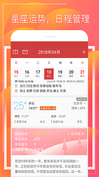 财童万年历app是一款很实用的日历管理软件,不仅有公历、农历、黄历等多种日历查询功能,还能提醒节假日和重要日子。它还支持星座运势、天气预报、日程管理等实用工具,操作简单又快速,特别适合需要多任务管理的用户。