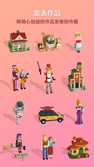 拼图创景也叫Puzzrama,这是一款来自海外厂商发行的休闲益智手游,游戏整体画风是玩家们非常中意的经典像素,在这里玩家的主要操作就是依靠轮廓提示完成立体拼图,并通过收集到的拼图模型,自由放到场上设计场景,制作出自己独一无二的情景模型。与此同时,游戏内有着官方为大家提供的丰富场景和角色模板,而且你还可以下载其他人的作品进行拼图拼接,从中收集更多你认为理想的作品。除了海量模板的每日挑战以外,玩家还可利用创作工具进行上色等制作,并将自己的创意作品发布到市集与其他玩家分享,或是参加每天举办的竞赛,与全世界的创作者争夺排名。