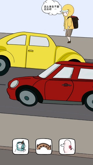 这款游戏的最大特色在于它的解谜方式——每次只有一项选择是正确的,考验玩家的观察力和判断力。比如,在第一关中,你需要让男友拍一张蓝底照片,选择蓝色衣服;第二关则需要在车流中找到白色油漆画人行道的方法。这些设计既简单又充满脑洞,让人欲罢不能。