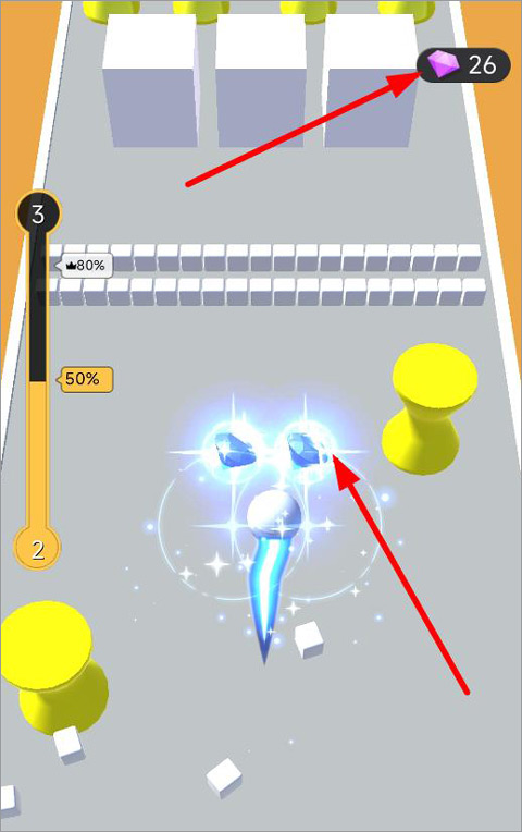 2、在游戏过程中可以收集钻石,注意不要撞到彩色障碍物;