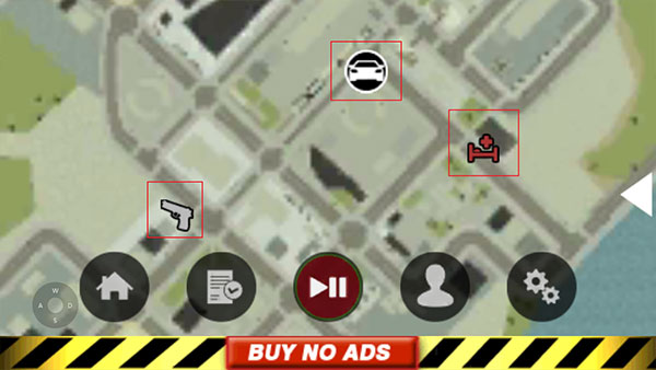 游戏中有丰富的剧情反转和惊喜,考验玩家反应能力。购买武器也很方便:进入游戏后找到地图上的手枪图标,开车快速到达武器店,点击购物车就能购买喜欢的武器,购买后还能切换武器战斗。