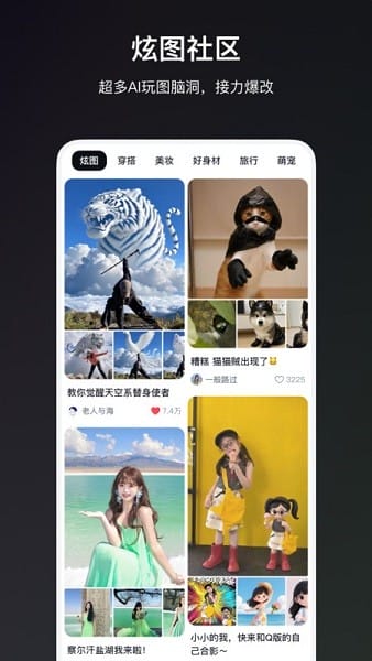 支持图片拼接、融合等,用户可自由搭配图像元素,打造独特视觉效果。