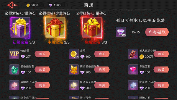 5、商店可以使用钻石来购买一些装备资源以及金币