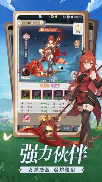 3、利用收获的资源强化角色、升级技能装备,并招募培养多位女神伙伴,组建专属冒险小队。