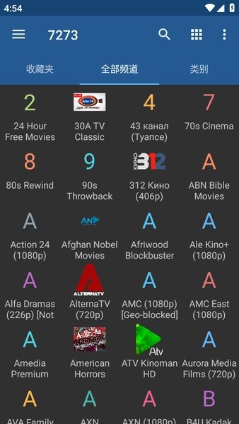 加载成功后,就会显示所有的频道,如图所示,就是全部频道;