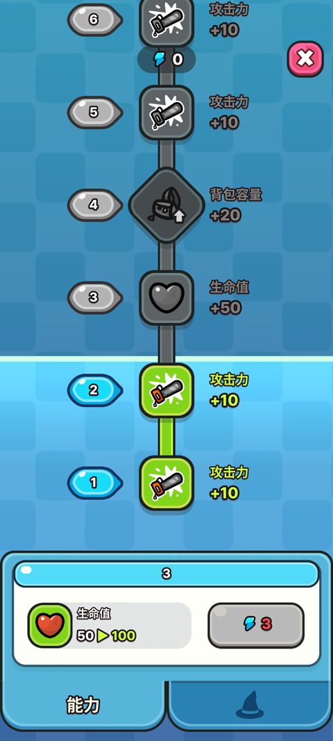 6、另外,完成任务提升等级还可升级攻击力,以此更快速度收割水果。