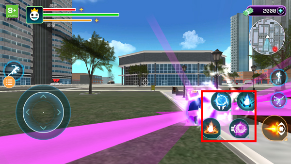 2、右下方的技能分别是释放各种技能的按钮;