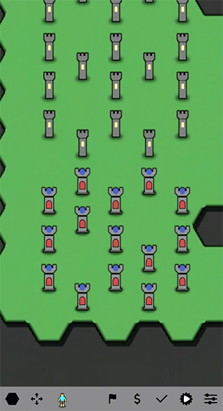 游戏中的树会减少金币收益,房子能提高收益但造价随数量增加,哨塔则会降低收益但提供保护。兵种从1级到4级逐渐强大,不仅能攻击更多目标还能吃掉低级或同等级的敌人。建筑和单位的摆放位置直接影响战斗结果,玩家需要精心规划才能在领土争夺中占据优势。