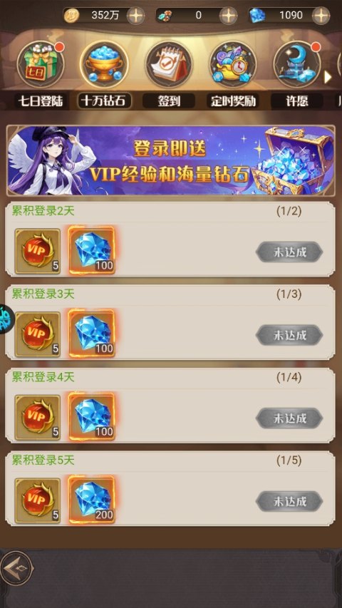 4、累积登录就送vip经验和海量钻石