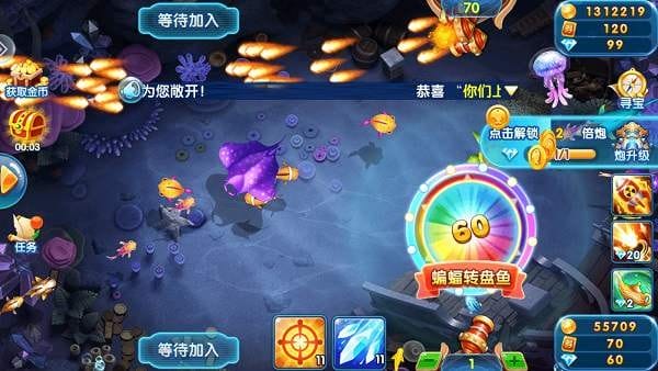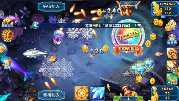 玩家可以通过捕鱼、升级、完成任务、参加活动等多种方式获得丰富的奖励,如金币、钻石、道具、装备等,这些奖励可以用来购买更强大的武器、解锁新的关卡或兑换实物礼品。