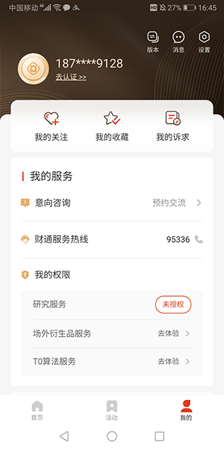 这个app整合了财通证券的各类资源和服务,涵盖投资研究、投行咨询、资产管理等多个领域。比如,高净值用户可以通过该平台找到专属的一对一基金经理,享受定制化的财富管理服务。此外,平台还提供股权减持、场外衍生品交易等多样化选择,帮助用户灵活调整资产配置。