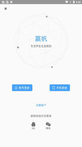 打开赢帆生涯app,输入手机账号进行登录,也可使用第三方软件进行登录;