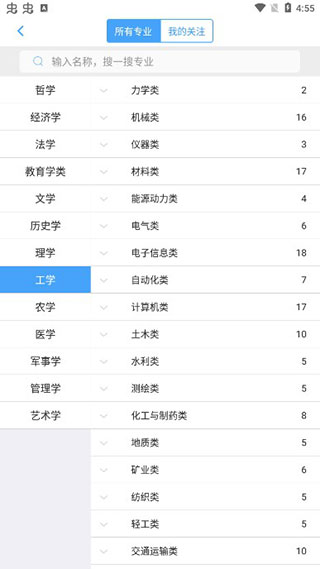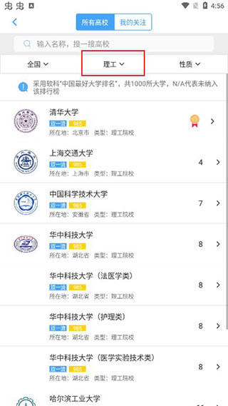 也可以根据自己的学科类型进行高校的选择,能够详细查看每一所高校;