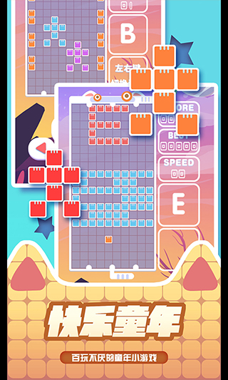 这个游戏看起来挺有意思的!百变俄罗斯其实就是俄罗斯方块的手机版,画面用的是卡通治愈系配色,感觉特别适合喜欢怀旧的人。操作很简单,左键右键就能切换游戏类型,开始按钮直接进游戏,和小时候玩的游戏机差不多,超有亲切感!