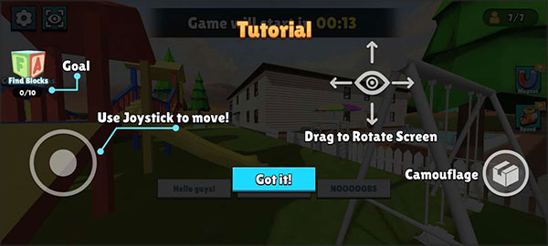游戏中有各种道具可以使用,关卡设计也挺多样的,每次都玩有不同的地图和挑战。操作方面,左下角的轮盘控制移动,右下角变身物品,滑动屏幕调整视角,简单易学。新手也能很快上手,享受游戏乐趣。
