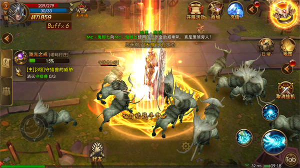 2、进入战斗环节玩家可以自由选择手动操控还是自动挂机。