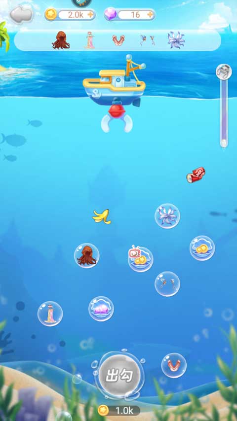 玩家可以点击下方的打捞选项,确定好位置之后点击出勾,就能获得新的服装了,不过有时候还能获得金币等道具。