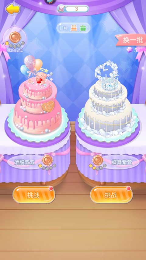 第一步就是选择你想要PK的蛋糕类型并点击下方的挑战按钮。下面就是开始进行制作,从口味、装扮等方面来决定是否能够挑战成功。