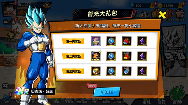 1、玩家开局就可以领取神龙助力大礼包,领取UR英雄超蓝孙悟空以及各种福利礼包。