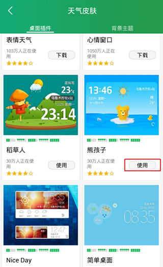 5、待下载完毕,并且显示 “ 使用 ” 按钮后,我们在点击 “ 使用 ” 然后退出最美天气即可;