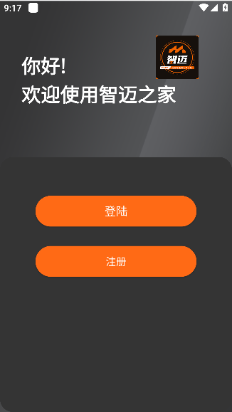 1、打开智迈之家app后,老用户可以直接登录,新用户就点击“注册”;