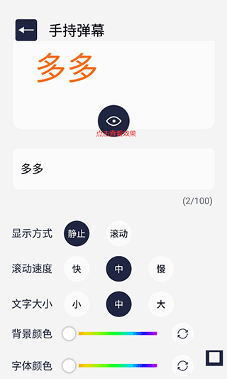 2、在这个界面按自己的喜好设置文字、背景、颜色和其它细节,最后点击上面按钮,观看成果。