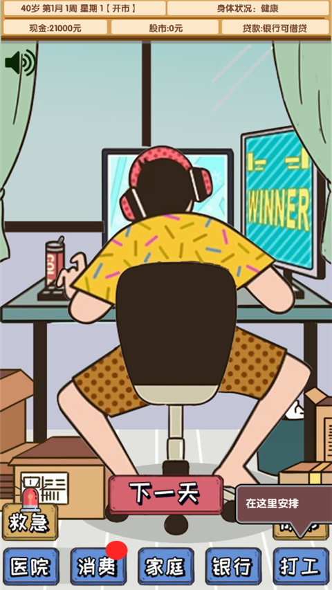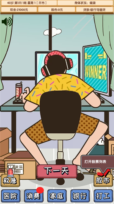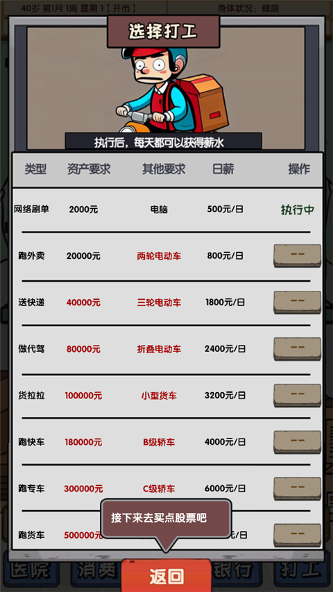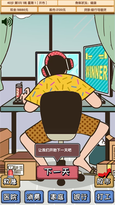 在玩的过程中,我体验到了炒股的刺激感,特别是看到股票上涨的时候真的很有成就感。但同时也要承担风险,如果投资失败可能会面临破产,这种紧张感让人欲罢不能。游戏里的系统设计得很全面,除了炒股还能打工、看病、买东西,甚至还要哄家人开心,真是把生活模拟得淋漓尽致。