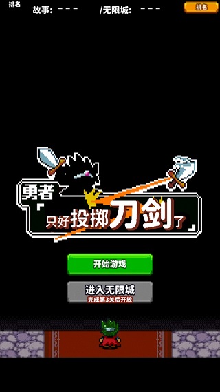 1、这款勇者只好投掷刀剑了游戏也是一款比较有趣的休闲手游,同样也是闯关、冒险、射击、单机的必备存在。