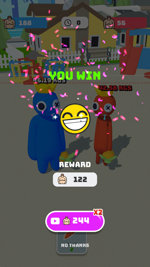 4、赢得比赛后便可以获取到海量的钞票和体重了!