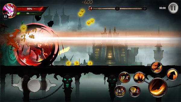 总体来说,游戏与常规的横版闯关游戏相似,左侧移动,右侧技能、跳跃可谓是中规中矩,在这里玩家将凭借你犀利的操作和走位尽可能的躲避敌人的攻击,并战胜击杀所以的敌人。