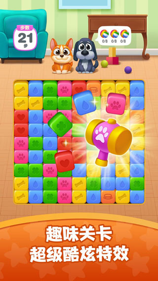 狗狗消消消是一款全新的红包玩法的消除类型的休闲手游,才艺简约卡通画风,有着欢乐十足的消除过程等你去享受,还有很多的模式等你完成,每一关都将会带给你更多的体验,众多的内容任你尽享。在这里有着最为丰富的关卡设定,进行消除的时候每天都可以体验到无与伦比的精彩,展现出出色的消除技巧吧,在最为快捷的时间内达成消除目标的挑战,收获诸多奖励获取到属于你的全新红包奖励。游戏拥有传统而简单的玩法,中老年小都能够玩,闲暇时间消磨一下时间,娱乐一下,是极好的,里面的悠闲背景音乐让人更加舒适,还能赚取现金红包,所有的获得的红包只要完成当天的消除任务即可自由进行提现。狗狗消消消游戏为每一位玩家都准备了超多福利,玩家可以自由选择不同的消除挑战内容来感受不同的玩法乐趣,新人上线就有红包玩的越多奖励越多,享受全新方块消除玩法感受不同游戏内容,不断完成更多挑战赢得更多奖励。