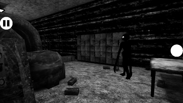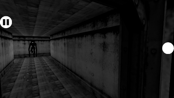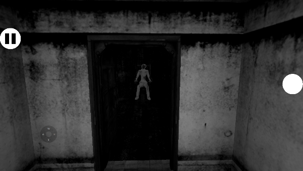 1、进入游戏后,你将置身于一片黑暗的地方,你需要找到一扇门点击右边的白色圆圈即可打开门看到一点亮光,看到独眼黑影就上前去。