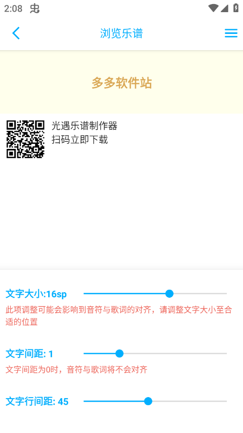 1、在该软件的浏览乐谱界面你可以看到底下有文本样式和背景样式调节功能,点击文本样式,可以调节文字大小,文字间距,文字行间距。