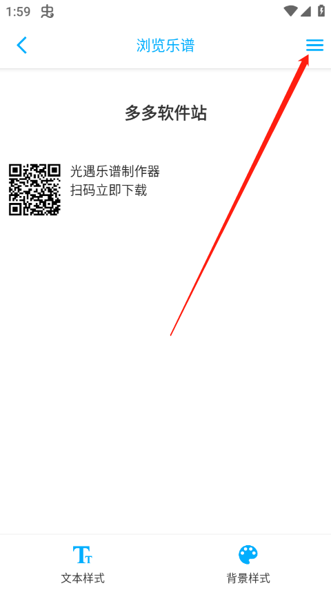 1、在乐谱列表页面选择你创造的曲子,你可以进入浏览乐谱界面,点击右上角的符号。