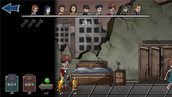 5、更具自己的情况使用道具来帮助自己能躲避抓捕成功生存到最后。