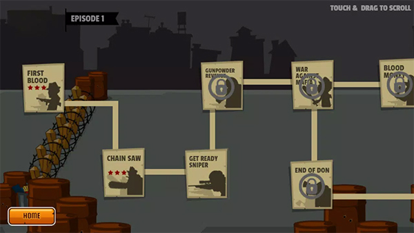 3、瞄准目标:点击射击,主线:杀死关卡内所有敌人。