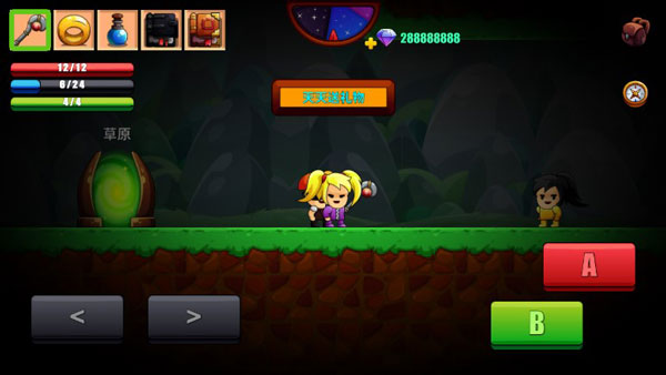 游戏刚开始,屏幕上会有左右行走键和A采取键B跳跃键,先寻找到黄色的小男孩点击它进入草原副本冒险。