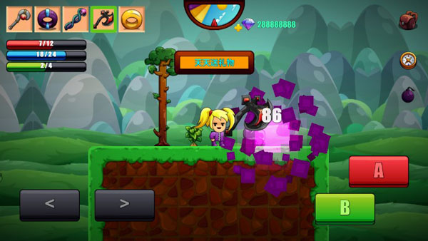游戏有四个主要特色:清新唯美的卡通画风,Q萌的角色设计;横版战斗操作简单易上手;玩法多样,包括探索冒险、找资源、打怪物等等;还有四人联机模式,和好友一起玩更有趣。新手刚开始可以先选初始属性,建议多用钻石的角色,属性更好。操作也很直观,左边是移动键,右边是跳跃和攻击,武器可以在右侧五个格子里快速切换。
