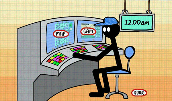 火柴人午夜生存2是一款火柴人题材的解谜生存类型休闲益智游戏,英文名叫Stickman Survival 2,也是同名系列的续作,手绘火柴人的卡通美术风格,在游戏中你将成为一名保安,在stickman疯人院工作,你需要生存五个夜班,到达一周结束。为了生存,你必须阻止疯狂的囚犯进入你的安全室。过程中可以使用摄像头追踪囚犯的位置并使用地图控制台打开或关闭门以阻止囚犯接近你。如果其他一切都失败了,关上你的房门,把囚犯挡在外面!让自己生存下去,你能坚持的下这5天的冒险吗?