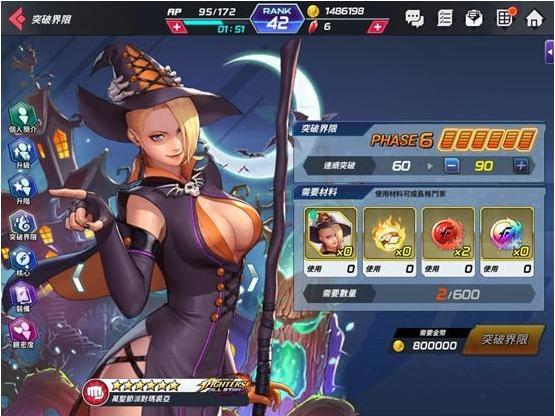 升阶也是尽量优先,因为能加等级上限和一些素质,只是有时候最好预留几只好配合任务,因为有的任务判定是当下有才算,之前解的并不算,所以留着方便解任务。 突破界限则是要花费战魂。战魂简单说分为指定属性、指定品质、全格斗家和角色战魂四种,有其中一项达成需求就可以提升,最多可以让角色提高30级。非节日和活动限定的角色,大部份都有角色战魂,可以透过故事关卡拿到战魂(有些是要靠日常或限定活动),所以前面先推关就很重要。
