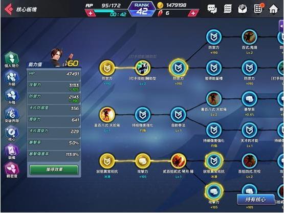 核心方面大概是最复杂也是较农的一块,基本上可以分成加素质、升级与解锁技能这几种。前期如果只是单纯组成好打的队伍,或是没决定是否为主力时,推荐只要先解锁必杀技(第2排第1个)和核心技能(第3排第3个),而打手技能(第1排第2个)随意,之后是否往下投资看个人喜好,这样算是比较基础的解锁方向,毕竟收集核心可能也要一直打核心副本比较快,但那要花体力。