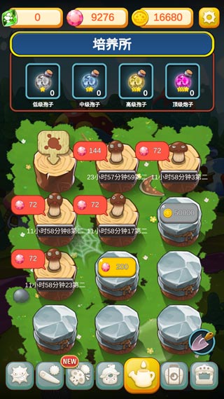 2、高度自由的蘑菇放置玩法,轻度休闲养成元素机制。
