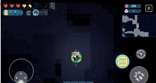 2、游戏画面采用2D视角,玩家使用双摇杆操作角色进行射击和移动,搭配一些功能按钮完成其他操作;